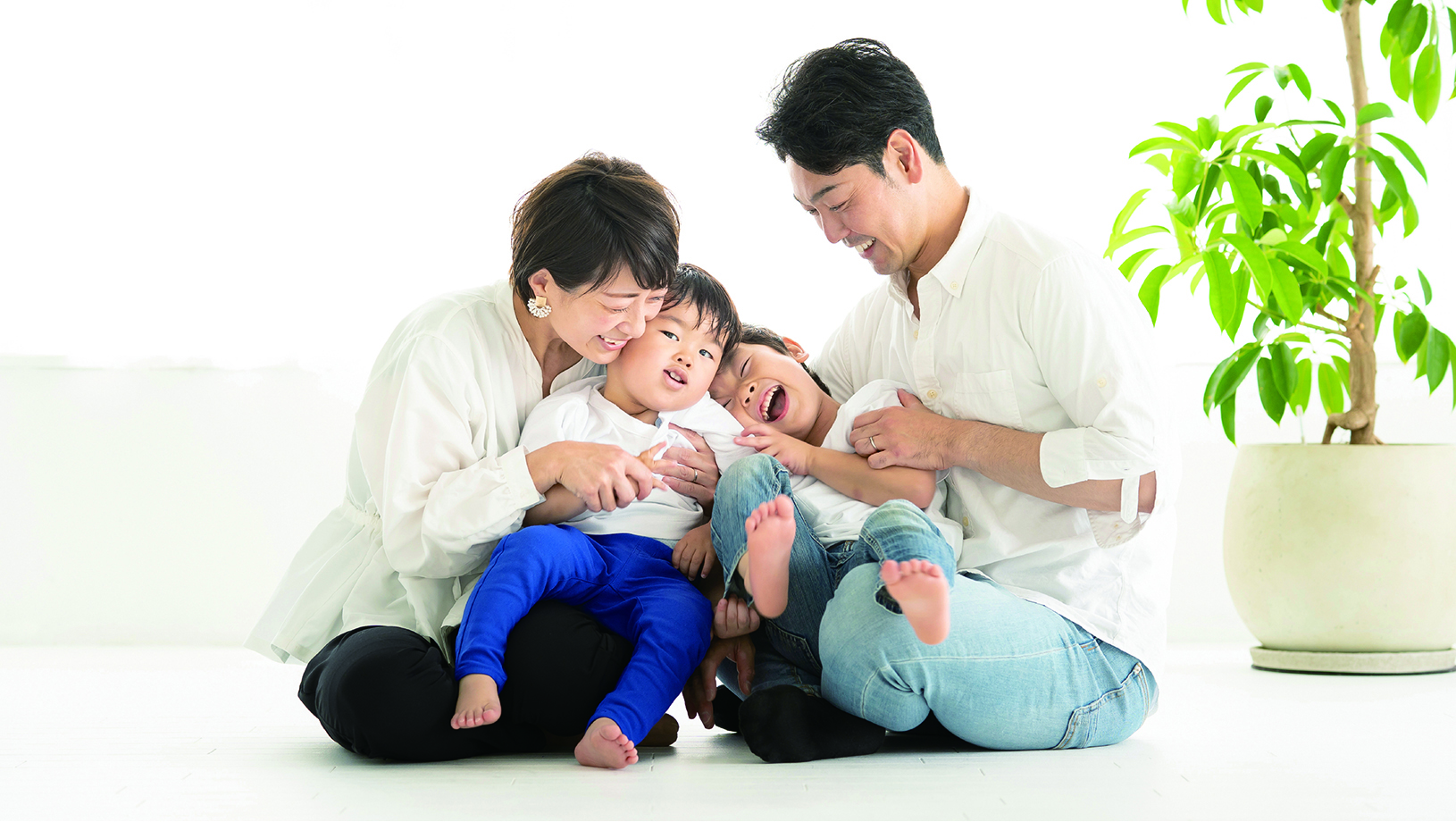 夏の暑い日差しを遮り、冬の暖かな日差しは家の奥まで差し込むように考えられたパッシブ設計は、なるべく機械に頼らず自然のエネルギーを最大限活用してくれます。また、気圧調整式第一種全熱交換気システム「エクリア(AIR CREAR)」を採用することで、給気する空気量が多く、排気される空気量が少ない「正圧」の空気環境を実現。足元から天井まで全室同じ温度・湿度で暮らせる快適な空間が叶いました。さらに、家じゅうの空気を2時間に1回入れ替えてくれるので、コロナ禍でも安心。壁に大きな穴を開ける第三種換気システムとは違い、高気密住宅が実現でき、断熱性能、省エネルギー性能の指標となる外皮平均熱貫流率(UA値)を少なくすることで、この家の自家消費電力(kWh)を極限まで抑えています。